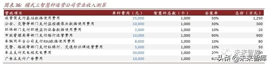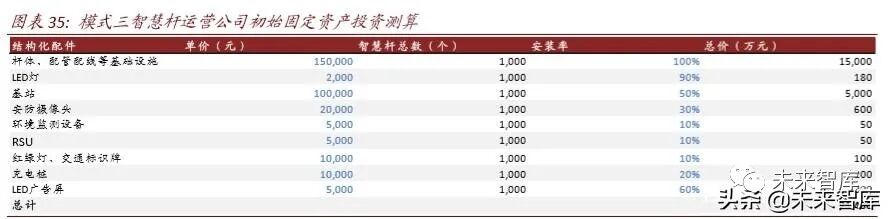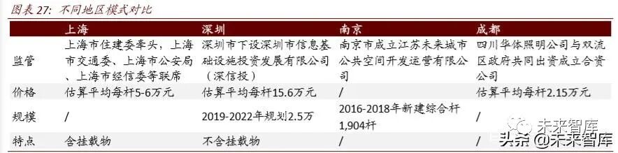 报告综述: 5G 网络和智慧城市建设对挂载用杆塔需求明 确,我们认为“智慧杆”是新基建时代尚待发掘的金矿。2019 年我国灯杆保有 量约为 2,935 万(国家统计局数据),是全国通信铁塔保有量的十倍以上,如果 叠加安防、交通用杆等规模更为惊人。但目前路侧杆建设管理主体分散,难以发 挥规模效应集中资源。从 2015 年左右部分地方政府发布了一系列文件,试点性 地推进路侧杆向“智慧杆”改造。我们通过在沪深等地实地调研,总结了目前智 慧杆运营的商业模式,同时我们新提出两种未来可行的商业模式。我们相信智慧 杆如果能够顺利发展,能够打通智慧城市数据孤岛问题,有望带动每年千亿元级 别改造投资,同时节省电信、公安、交通等部门大量的重复建设费用。 智慧杆的现状与问题。我国智慧城市对路灯、基站、摄像头、环境监测设备、充电桩需求达到上亿级别,都需要路侧杆挂载。但我国基础设施建设管理职权分散,造成了大量道路开挖、重复建设问题,既影响城市美观又造成资金 浪费;另外不同源的数据目前也分散在各个管理部门,难以打通数据孤岛。智慧杆或者综合杆是城市发展到一定水平的必须之路,目前正从一线城市向二线城市发展,高效配置建设资金的同时也能助力我国经济数字化转型。 如何理顺智慧灯杆的商业模式。我们通过实地调研,了解到我国沪深广、南 京、成都等城市在地方政府推动下,从 2018 年左右已开启智慧杆的规模试 点建设,政府通过建立专职部门或公司统筹智慧杆的建设运营,打破了管理 部门间的藩篱。部分试点同社会资本形成了合作,尝试通过市场化机制管理 智慧杆。主要试点模式为杆体统一建设管理,挂载物和数据仍分别管理。另 外,沪深等地还发布了智慧杆建设地方标准,并成立了智慧杆推动组织。我 们建议将智慧杆的建设上升至智慧城市新基建的子项目层级,由当地政府 一把手统一管理。建议智慧杆建设打破管理和数据孤岛,服务于城市各管 理机构,优化城市运行。一旦生态理顺,智慧杆对政府而言 ROI 较好,将成 为新基建待发掘的下一个金矿,根据搭载物的品类和数量获得较好的 IRR 回 报率和 EBITDA 水平。 智慧灯杆产业的投资机会在哪里。1)智慧杆运营公司(包括国网、铁塔等 公司本身):一部分智慧杆运营公司由政府牵头组成,另外一部分智慧杆公 司由国网、铁塔等大型国有企业设立,为提高公司运营效率,部分智慧杆公 司也会引入民间资本;2)杆体、安防装备、显示屏、充电桩等设备供应商: 海康大华、华体科技、日海智能、利亚德、洲明科技等公司从安防、杆体、 照明等不同角度切入智慧杆产业链;华为公司发展智慧杆应用,并通过 Ocean Connect 开放平台推动城市传感器的管理;3)智慧城市顶层设计公司 或工程总包公司:如华为、阿里、腾讯、海康、大华、勤电等。 问题:基础设施多头管理导致重复建设和数据孤岛问题随着我国城市化建设的不断推进,“5G+智慧城市(smarter cities)”的深入发展,路灯、 红绿灯等“老”基建设施以及基站、摄像头、环境监测设备、车联网路侧单元等“新” 基建设施都将快速布满城市,数量呈快速增长。 ► 基站:移动互联网向高速化、泛在化、场景化方向不断发展。从 3G 到 4G 再到 5G, 移动互联网的平均速度从 1MB/秒(理论最高速度 4MB/秒)到 70MB/秒(理论最高 速度 90MB/秒)呈现百倍增长,对基站容量和密度要求不断提升。同时,4G/5G 的 覆盖将更加广泛,中国基站数量从 2010 年超 100 万个到 2020 年超 500 万个。另外, 网络从传统的人际网络向物联网络延伸,基站的挂载场景更加复杂。 ► 监控:在国家政策支持下, “平安城市”、“雪亮工程”、“智慧城市”等工程在全国各 地推进,安防市场快速增长,监控摄像头的数量也不断增加。根据中商产业研究院 数据,我国安防行业市场规模从 2012 年的 3,240 亿元增长到 2018 年的 6,600 亿元, 增长 104%,预计 2019 年安防行业市场规模将近 7,200 亿元。根据 IHS Markit 数据, 2017 年中国监控摄像头的数量为 1.76 亿个,预计 2020 年中国监控摄像头数量将达 到 4.5 亿个。 ► 环境:环保监察常态化、污染物排放标准提升、环境税征收、环保监测垂改制度推 行以及环境监测网格化体系建设等因素驱动环境监测设备部署。例如,1)大气治 理方面,生态环境部“千里眼计划”对京津冀及周边地区“2+26”个城市划分网格, 利用卫星遥感技术筛选出 PM 2.5 较高的 3,600 个网格作为热点网格进行重点监测;2)水治理方面,根据环保部数据,截至 2018 年全国地表水水质检测国控断面扩展 至 2,050 个,地下水监测点建成 5,100 个,城乡饮用水水质监测实现全国所有地市、 县区全覆盖和 85%的乡镇覆盖,污染源监测性监测重点企业数量达到 2.87 万家;3) 土壤治理方面,国家土壤环境监测网已经初步建设,其中生态环境部 38,880 个监测 点位,农业农村部 40,061 个监测点位,自然资源部 1,000 个监测点位。根据北极星 环保网的数据,2018 年中国环境监测设备销售量达到 63,398 台,同比增长 12.06%。 ► 照明:技术方面:传统路灯使用的是高压钠灯,具有功率大、亮度高的优点,但也 有着高能耗、寿命短的缺点;2010 年前后,在国家“节能减排”政策下,节能环保、 寿命更长的 LED 路灯逐步取代传统的高压钠灯。数量方面:1)功能性照明,随着 城镇化建设的推进,照明路灯数量越来越多,根据统计局数
