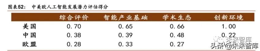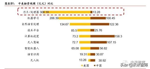 人工智能市场格局 人工智能(Artificial Intelligence,AI)是利用机器学习和数据分析方法赋予机器模拟、延 申和拓展类人的智能的能力,本质上是对人类思维过程的模拟。AI 概念最早始于 1956 年 的达特茅斯会议,受限于算法和算力的不成熟,未能实现大规模的应用和推广。近年来, 在大数据、算法和计算机能力三大要素的共同驱动下,人工智能进入高速发展阶段。据中 国电子学会预测,2022全球人工智能市场将达到1630亿元,2018-2022年CAGR达31%。 人工智能赋能实体经济,为生产和生活带来革命性的转变。人工智能作为新一轮产业变革 的核心力量,将重塑生产、分配、交换和消费等经济活动各环节,催生新业务、新模式和 新产品。从衣食住行到医疗教育,人工智能技术在社会经济各个领域深度融合和落地应用。同时,人工智能具有强大的经济辐射效益,为经济发展提供强劲的引擎。据埃森哲预测, 2035 年,人工智能将推动中国劳动生产率提高 27%,经济总增加值提升 7.1 万亿美元。 多角度人工智能产业比较 目前,全球人工智能产业的生态系统正逐步成型。依据产业链上下游关系,可以将人工智 能划分为基础支持层、中间技术层和下游应用层。基础层是人工智能产业的基础,主要提 供硬件(芯片和传感器)及软件(算法模型)等基础能力;技术层是人工智能产业的核心, 以模拟人的智能相关特征为出发点,将基础能力转化成人工智能技术,如计算机视觉、智 能语音、自然语言处理等应用算法研发。其中,技术层能力可以广泛应用到多个不同的应 用领域;应用层是人工智能产业的延伸,将技术应用到具体行业,涵盖制造、交通、金融、 医疗等 18 个领域,其中医疗、交通、制造等领域的人工智能应用开发受到广泛关注。 战略部署:大国角逐,布局各有侧重 全球范围内,中美“双雄并立”构成人工智能第一梯队,日本、英国、以色列和法国等发 达国家乘胜追击,构成第二梯队。同时,在顶层设计上,多数国家强化人工智能战略布局, 并将人工智能上升至国家战略,从政策、资本、需求三大方面为人工智能落地保驾护。后起之秀的中国,局部领域有所突破。中国人工智能起步较晚,发展之路几经沉浮。自 2015 年以来,政府密集出台系列扶植政策,人工智能发展势头迅猛。由于初期我国政策 侧重互联网领域,资金投向偏向终端市场。因此,相比美国产业布局,中国技术层(计算 机视觉和语音识别)和应用层走在世界前端,但基础层核心领域(算法和硬件算力)比较 薄弱,呈“头重脚轻”的态势。当前我国人工智能在国家战略层面上强调系统、综合布局。 美国引领人工智能前沿研究,布局慢热而强势。美国政府稍显迟缓,2019 年人工智能国 家级战略(《美国人工智能倡议》)才姗姗来迟。但由于美国具有天时(5G 时代)地利(硅 谷)人和(人才)的天然优势,其在人工智能的竞争中已处于全方位领先状态。总体来看, 美国重点领域布局前沿而全面,尤其是在算法和芯片脑科学等领域布局超前。此外,美国 聚焦人工智能对国家安全和社会稳定的影响和变革,并对数据、网络和系统安全十分重视。 伦理价值观引领,欧洲国家抢占规范制定的制高点。2018 年,欧洲 28 个成员国(含英国) 签署了《人工智能合作宣言》,在人工智能领域形成合力。从国家层面来看,受限于文化 和语言差异阻碍大数据集合的形成,欧洲各国在人工智能产业上不具备先发优势,但欧洲 国家在全球 AI 伦理体系建设和规范的制定上抢占了“先机”。欧盟注重探讨人工智能的社 会伦理和标准,在技术监管方面占据全球领先地位。 日本寻求人工智能解决社会问题。日本以人工智能构建“超智能社会”为引领,将 2017 年确定为人工智能元年。由于日本的数据、技术和商业需求较为分散,难以系统地发展人 工智能技术和产业。因此,日本政府在机器人、医疗健康和自动驾驶三大具有相对优势的 领域重点布局,并着力解决本国在养老、教育和商业领域的国家难题。 基础层面:技术薄弱,芯片之路任重道远 基础层由于创新难度大、技术和资金壁垒高等特点,底层基础技术和高端产品市场主要被 欧美日韩等少数国际巨头垄断。受限于技术积累与研发投入的不足,国内在基础层领域相 对薄弱。具体而言,在 AI 芯片领域,国际科技巨头芯片已基本构建产业生态,而中国尚 未掌握核心技术,芯片布局难以与巨头抗衡;在云计算领域,服务器虚拟化、网络技术 (SDN)、 开发语音等核心技术被掌握在亚马逊、微软等少数国外科技巨头手中。虽国内 阿里、华为等科技公司也开始大力投入研发,但核心技术积累尚不足以主导产业链发展;在智能传感器领域,欧洲(BOSCH,ABB)、美国(霍尼韦尔)等国家或地区全面布局传 感器多种产品类型,而在中国也涌现了诸如汇顶科技的指纹传感器等产品,但整体产业布 局单一,呈现出明显的短板。在数据领域,中国具有的得天独厚的数据体量优势,海量数 据助推算法算力升级和产业落地,但我们也应当意识到,中国在数据公开力度、国际数据 交换、统一标准的数据生态系统构建等方面还有很长的路要走。 “无芯片不 AI”,以 AI 芯片为载体的计算力是人工智能发展水平的重要衡量标准,我们 将对 AI 芯片作详细剖析,以期对中国在人工智能基础层的竞争力更细致、准确的把握。 依据部署位置,AI 芯片可划分为云端(如数据中心等服务器端)和终端(