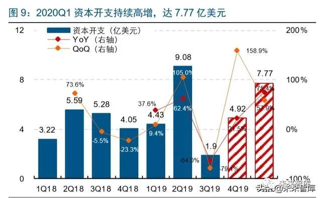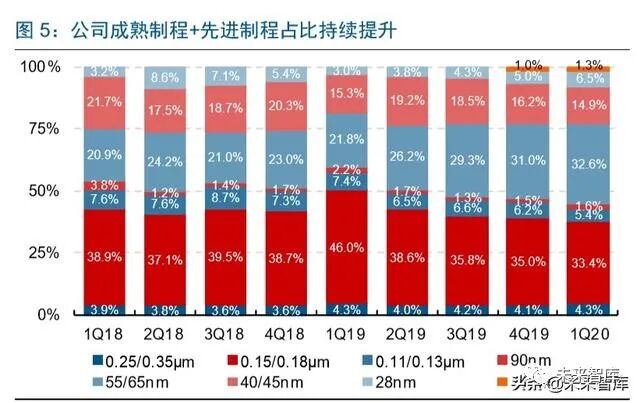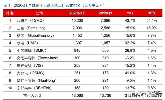 半导体全产业链国产化进入攻坚阶段 5 月 15 日晚 19 时,美国商务部宣布将华为的临时许可再延长 90 天,推迟到 2020 年 8 月 13 日。并在随后发布声明称,全面限制华为购买采用美国软件和技术生产的半导 体,包括那些处于美国以外,但被列为美国商务管制清单中的生产设备,要为华为和海 思生产代工前,都需要获得美国政府的许可证。同时给予 120 天的缓冲期。 此前美国已出台多项规定限制我国半导体产业:1、扩展对军事终端使用/用户管制为限 制更广范围的军事终端用户,并限制其使用美国受管控的技术及装备(半导体设备、传 感器和其他技术),美国将扩展对中国、俄罗斯和委内瑞拉等国的 MEU 许可证要求;2、 取消民用终端用户的许可证豁免,取消了部分国家通过出口、转出口或国内运输给可能 威胁美国国家安全的民用终端用户的部分商品的出口许可证豁免。其中包括俄罗斯、中 国等 D1 组国家,主要涉及高端计算机、电信设备、集成电路、雷达和其他物品。 本次公告为计划而非正式条款,我们推演极端情况下华为面临短期断供,但华为并非毫 无准备,此前已积极进行备货,大力扶持国内供应商成长;同时大基金迅速增资中芯国 际,显示国家战略决心和准备。 我们认为:1、晶圆代工吹响突进号角:中芯国际经营情况持续优化,先进制程不断扩 产;2、存储芯片国内双强突破:长鑫存储、长江存储部分技术已跻身国际一流水平,产 能扩张稳定有序;3、化合物半导体加速替代:三安光电化合物半导体大平台未来可期;4、一二级市场与半导体产业形成健康循环:大基金引领下国内一二级市场以及全社会 资源对半导体产业形成正向循环下,国内半导体产业已逐步形成自身的健康的、螺旋上 升的成长体系,未来我国半导体产业成长空间将在外部限制倒逼下持续扩张。 晶圆代工尖兵突进,SMIC 吹响前进号角一季度业绩大超指引,先进+成熟制程驱动高增 一季度业绩大超此前指引,中芯国际吹响半导体国产化号角。中芯国际公布 2020Q1 业 绩情况,实现营收 9.05 亿美元,同比+35.28%,环比+7.80%;实现归母净利润 0.64 亿 美元,同比+422.85%,环比-27.69%;整体业绩创历史新高。公司预期二季度环比增长 3-5%,同比增长 18-20%。公司方面表示业绩大幅增长主要系市场需求和产品结构优于 预期。公司业绩优于业绩指引与市场预期,凸显全球半导体行业在疫情影响下仍保持相 当的承压韧性和增长动能,同时一定程度上反映了半导体行业未来经济复苏下行业景气 回升的潜力。 产品结构持续优化,成熟制程+先进制程驱动公司毛利持续上行。近两年中,自 2018 年 Q4 开始公司毛利率持续回升, 2020Q1 实现毛利率 25.8%,已接近 2018Q1 的 26.5%, 同比+7.6pct,环比+2.0pct。 成熟制程产能满载,先进工艺研发顺利。受益于摄像头、电源管理 IC、指纹识别、特殊 存储等应用需求强劲,公司成熟制程和先进制程占比持续提升。2020Q1 公司 55/65nm 制程产品占比同比+10.8pct,环比+1.6pct;28nm 制程产品同比+3.5pct,环比+1.5pct;14nm 制程产品同比+1.3pct,环比+0.3pct。 根据集邦咨询旗下拓墣产业研究院分析,2020 年第一季晶圆代工厂的营收排名中,中 芯国际排名行业第五位,预计市场占有率为 4.5%。 根据ChipInsights的数据,2019年中国大陆本土晶圆代工整体营收为391亿元人民币, 中芯国际排名国内第一。(华虹集团包括华虹宏力合上海华力的营收,华润微和武汉新 芯只计算晶圆代工营收) 需求强劲成熟制程产能满载,先进制程产能持续开出 需求强劲,产能满载。公司 2020Q1 产能增加 27,500 片/月(折合 8 寸晶圆),主要系 天津 200mmFab、北京 300mmFab、上海 300mmFab,2020Q1 产能分别环比+5,000片/月、+9,000 片/月、+1,000 片/月(未折合 8 寸晶圆)。产能持续满载,产能利用率为 98.5%,同比+9.3pct,凸显下游需求强劲。同时,晶圆出货量稳定提升,2020Q1 公司 实现晶圆出货 140.67 万片,同比+29.12%,环比+5.03%。 2020 年中芯国际将逐步扩大 FinFET 产能,至 2020 年年底将达月产 15000 片。公司正 在开发更加先进的 N+1 和 N+2 工艺(中芯国际内部代号),其中 N+1 工艺在去年四季 度已经完成流片,目前处于客户产品验证阶段,预计今年四季度风险量产。从 N+1 工艺 比 14nm,性能提升 20%,功耗降低 57%,逻辑面积缩小 63%,SoC 面积缩小 55%, 除了性能提升幅度低于 7nm 工艺,功耗和稳定性上都与 7nm 工艺相近。 信心充足奏响突进乐曲,全年 Capex 大幅上调 下游需求强劲,公司信心充足。下游需求持续加强为公司进行扩产带来充足动力,公司 2020Q1 资本开支延续 2019Q4 增长态势,达 7.77 亿美元,同比+78.4%,环比+57.9%。半导体制造公司产能与对下游需求的判断高度关联,基于 2020Q1 成熟制程产能满载, 先进制程工艺推进顺利,在通信、手机、汽车、消费电子等领域应用持续拓展,公司对 未来充满信心,将 2020 全年资本开支计划上调 11 亿美元至 43 亿美元,预计较 2019 年的 20 亿美元增长 115%。 此前,公司的资本开支主要用于晶圆厂的设备及设施,此外还有部分用于建设员工生活 区等。正是因为晶圆厂的持续投资,使得公司产能在过去年份中持续增长。本次公司将 上调的 11 亿美元 Capex 将主要用于上海 300mmFab 和成熟制程生产线的设备和设施 购置与建设,我们预计 14nm 先进制程产能将加速扩充,成熟制程也将在不断恢复的下 游需求中收益。 同时,公司对 2020Q2 维持较乐观预期,2020Q2 业绩指引为总营收约 9.32~9.50 亿美 元,