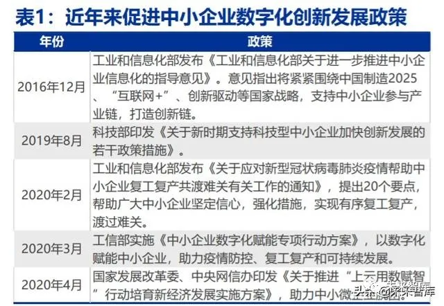 ◼ 中小企业迎政策利好,带动产业带数字化创新发展。近年来国务院出台多 项政策推动中小企业数字化创新发展,以数字化赋能中小企业,助力中小 微企业脱困。