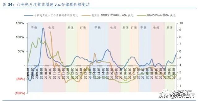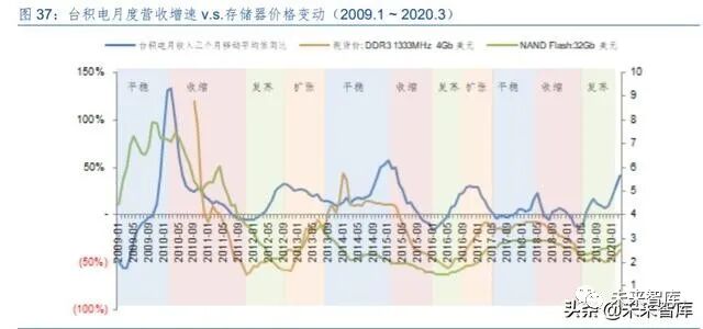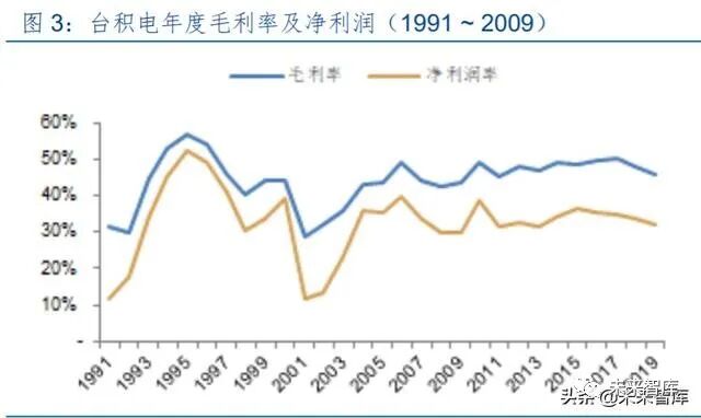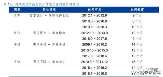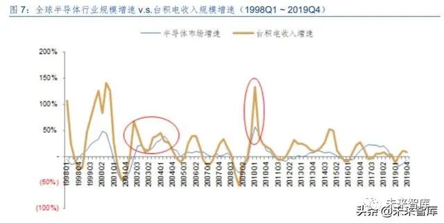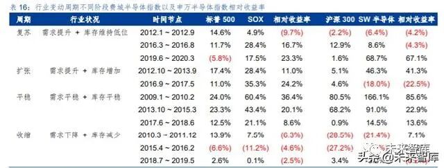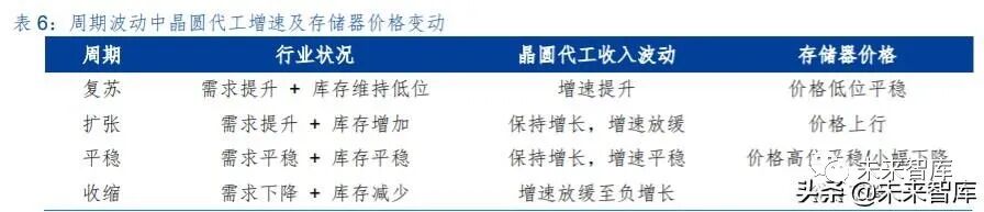 一、核心投资逻辑 我们认为,大需求周期波动 中小库存周期嵌入其中,上一篇中存储器的价格可以作为库存波动的指示性指标,而对于终端需 求变动敏感的晶圆代工厂商的数据信息,则是本篇中对于库存波动周期的另一个重要指标。我们 通过结合上述两个指标研判行业的周期过程,并且基于上述结论,探究在海外和国内市场,尤其 是二级市场的投资机会。主要结论如下: ➢ 整体行业展望:周期性回升会迟到,但不会缺席 从两个指标的结合看,产业未来 6~12 个月行业尽管在新冠疫情影响下上行过程受到延迟, 但上行趋势仍然可以确定,从 2019 年下半年开始,晶圆代工的核心供应商台积电的月度数据已 经进入到上行过程,而存储器价格则在 2019 年末开始回升,尽管新冠疫情影响下,两个信号均 出现了波动,但是无论是对于需求还是库存的与其看,行业逐步进入回升只是会受到短期的扰动 而不是趋势性的改变。 ➢ 晶圆代工未来趋势:进一步细分,先进工艺/特色工艺环肥燕瘦 晶圆代工从发展到现在的 30 多年来,核心推动力来自于基于摩尔定律的集成度提升使得晶 圆加工的投资规模持续增大,资本实力相对较弱的厂商逐步通过代工外包生产的方式来经营,而 2000 年前后的互联网泡沫以及 2008 年的金融危机,促进了这种外包生产模式的加速渗透,也 使得台积电为代表的厂商持续做大。从 2017 年之后,随着晶圆代工新建厂房追求先进工艺所需 的投入持续增加,更多的晶圆代工厂商也逐步选择暂停新工艺的投入。未来,我们认为先进工艺 将是台积电、三星和中芯国际持续追求的目标,而更多厂商将会在成熟工艺/特色工艺的细分市 场,占据各自的定位。 ➢ 投资机会:行业周期上行中选择合适的时点 一方面,我们研究了晶圆代工基本面信息结合资本市场资金面情况变化的结果,美国市场在 过去 10 年时间内由晶圆代工产业所显示出来景气周期,无论是资金层面如何变动都能够获得较 好的超额收益概率。国内 A 股市场在 2016 年之后受到自资金层面的影响更加大一些,行业基本 面的变动略低。另一方面,我们结合晶圆代工和存储器数据对行业周期进行划分,大致分为“复 苏-扩张-平稳-收缩”的周期循环,从美股市场看,扩张期和平稳期是获取收益的良好时间,国内 A 股则更加偏向于能够稳健确认的平稳期。 二、晶圆代工诞生到壮大:顺天应人,时来天地皆同力半导体晶圆代工商业模式的开创由台湾积体电路制造股份有限公司(简称“台积电”)开始, 张忠谋凭借其对半导体行业深刻的认知和台湾政府的支持,台积电整体发展过程相对较为顺利。固然张忠谋的见识和运筹是开创行业的重要因素,但是从行业的角度看,电路设计和晶圆加工两 个环节的分离,代工模式逐步与传统 IDM(Integrated Device Manufacturer,整合部件供应商) 分庭抗礼也是大势所趋,不仅是台积电,包括台湾、中国大陆、新加坡、马来西亚等亚洲各地的 半导体晶圆代工业务纷纷出现,继日本、韩国通过存储行业进入全球半导体竞争版图后,亚洲半 导体业务再次把握了突破的机遇。 (一)起步:岁在丁卯,台积电诞生扩张顺天应人 晶圆代工的创始在台积电,因此我们首先观察台积电的发展历程。台积电在 1987 年 2 月创 立于台湾新竹科学园区,其创始人张忠谋也被尊为台湾的半导体教父。 台积电开创了半导体行业一种全新的商业模式,尽管在早期的几年中不可避免的面临对于全 新商业模式的客户接受度挑战、经营管理摸索前行、行业标准模糊不清等各类困难,但是在经过 较大调整后获得英特尔的认证认可后,台积电随后的发展相对较为顺利。 从台积电披露的年报业绩数据可以看到的是,从 1991 年开始的信息显示,台积电保持了在 年度收入方面持续的快速成长,在过去 29 年内,仅有 2001 年和 2009 年出现了下降的情况。盈 利能力方面则更是重要的指标,毛利率基本保持在 40%以上,仅有 5 年低于这一水平,净利润 率则是平均在 30%以上。盈利能力从最初形成规模后就能够实现高位水平,并且持续保留下来, 显示了公司强大的竞争力,即使从整个半导体行业来看,台积电也是处于高盈利的状态。 尽管晶圆代工从产业模式上更加接近传统制造业的高资本投入和相对较高的人员劳动力成 本投入,而非科技企业相对较高的研发投入和无形资产规模,但是台积电能够持续保持快速的规 模成长以及盈利能力,显示其业务存在强大的稀缺性。我们认为,台积电所开创的晶圆代工产业 模式,以及由此开始的产业分工合作模式“顺天应人”,快速发展也顺理成章。 台积电及其代表的晶圆代工模式首先解决的是产业中资金的问题。 从图中我们可以看到,半导体行业收入规模扩张和资本开支扩张基本处于同步推进的过程, 尽管增速有所波动但资本开支总规模整体是大幅度提升的,与行业规模对比来看基本维持在25% 左右。根据 IC Insight 速度数据,从 1982 年到 2019 年的 37 年时间内,半导体行业资本开支规 模年复合增长率为 10.4%,2019 年整体规模达到了 1,023 亿美元。 整体规模的大幅增加的情况下,单个生产厂房项目投入规模方面尽管有差异,但是在 2000 年之后也达到了亿美元的数量级上,大规模的资本投入限制了更多的初创型厂商的进入。上图中 我们看到,即使是以 AMD(超微半导体)这种体量的厂商,在资本投资方面也显得举步维艰, 而仅有体量更加庞大的 I
